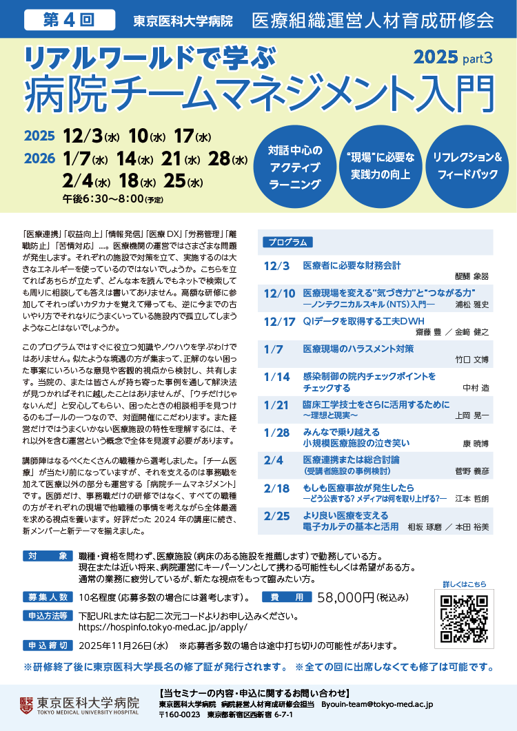 東京医科大学病院 医療組織運営人材育成研修会担当