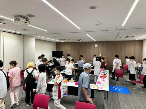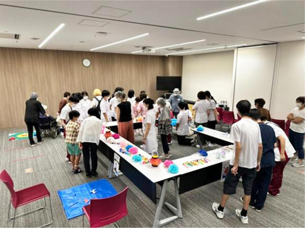 本日、かねてより準備を進めてきました小児科・思春期科とのコラボ企画「秋祭り」イベントの本番を迎えました。当日は、小児科病棟の子どもたちにお祭り気分を楽しんでもらえるよう、参加者全員で意見を出し合いながら会場設営を行いました。