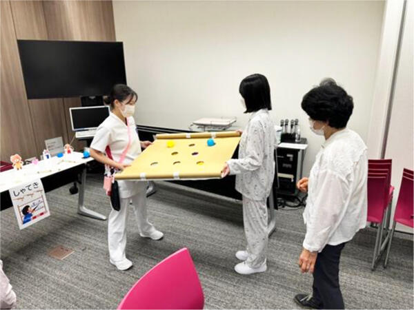 子どもたちが来室すると、会場は一気に明るくにぎやかな雰囲気に包まれ、笑顔と歓声があふれる時間となりました。認茶屋参加者も小児科病棟の子どもたちも、互いに笑顔で交流しながら、楽しいひとときを過ごすことができました。世代を超えた交流は、双方にとって良い刺激や癒しとなり、あらためてその意義を感じる機会となりました。