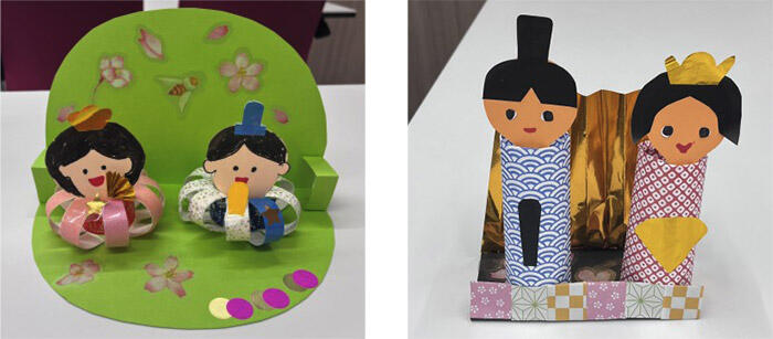 2月の認茶屋は、季節を感じる「ひな祭り」をテーマに開催しました。春の訪れを感じながら、今回はおしゃべりを楽しみつつ、ひな人形を手作りしました。折り紙や色紙、飾り素材を使い、それぞれの感性で自由に作成。お内裏様とお雛様の表情や衣装には個性があふれ、同じ材料でもまったく違う仕上がりになるのがとても印象的でした。「昔は家に七段飾りがあったのよ」「娘のために毎年出していたなあ」など、ひな祭りの思い出話にも花が咲き、自然と笑顔が広がるひとときとなりました。手を動かしながらのおしゃべりは、初めて参加された方同士の距離もやさしく縮めてくれます。完成したひな人形は、病院内のさまざまな部門に飾らせていただきました。院内を訪れる皆さまにも、やさしい春の雰囲気を感じていただければ嬉しく思います。