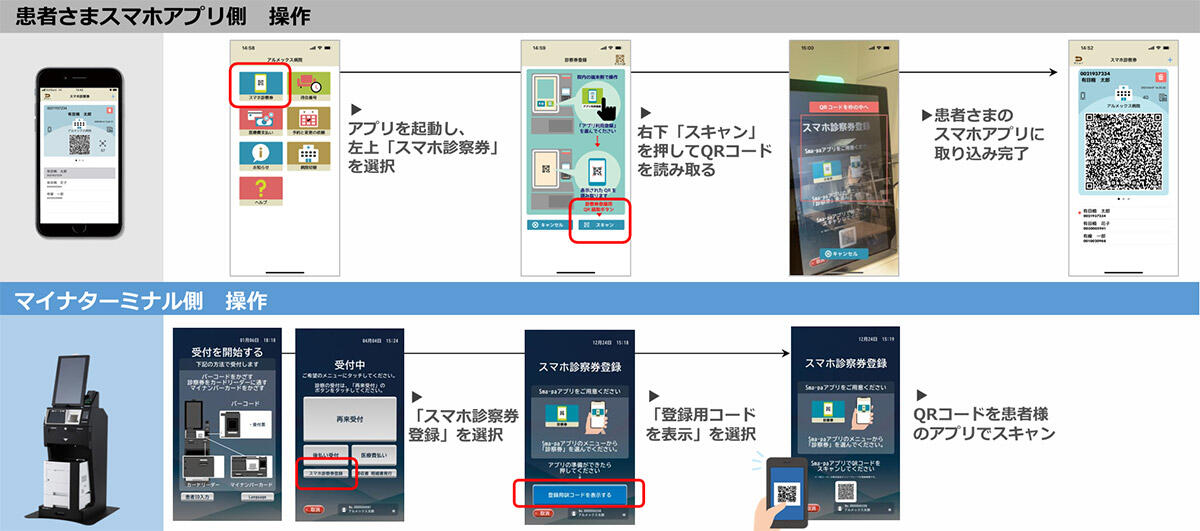 2マイナターミナルで、スマホ診察券を利用して後払い受付