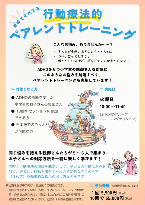 〈メンタルヘルス科より〉こどものこころ診療部門/行動療法的ペアレントレーニング実施のご案内(2025年11月更新)