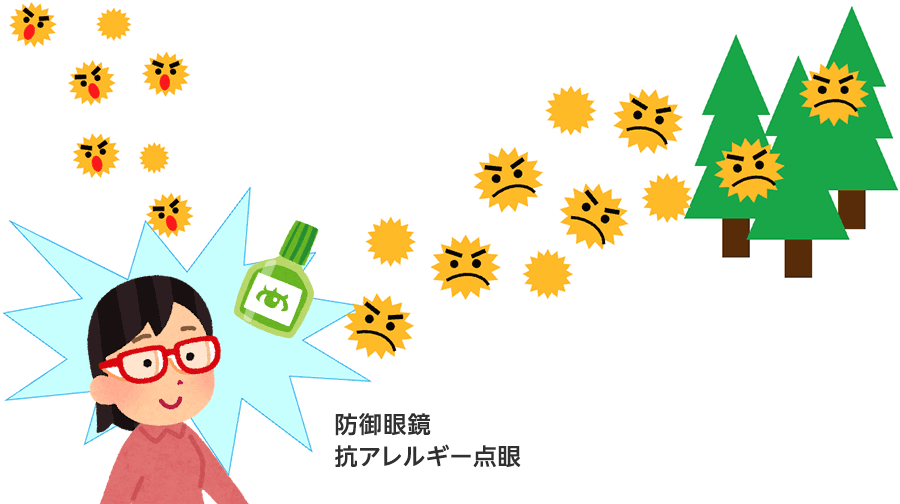 - 花粉からの防御や花粉の洗浄(人工涙液による洗眼)も予防に重要です。