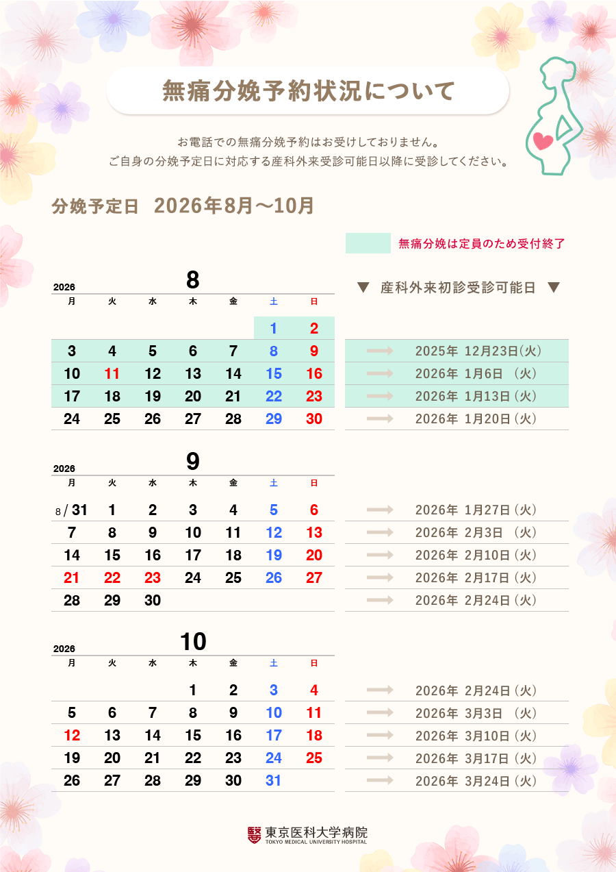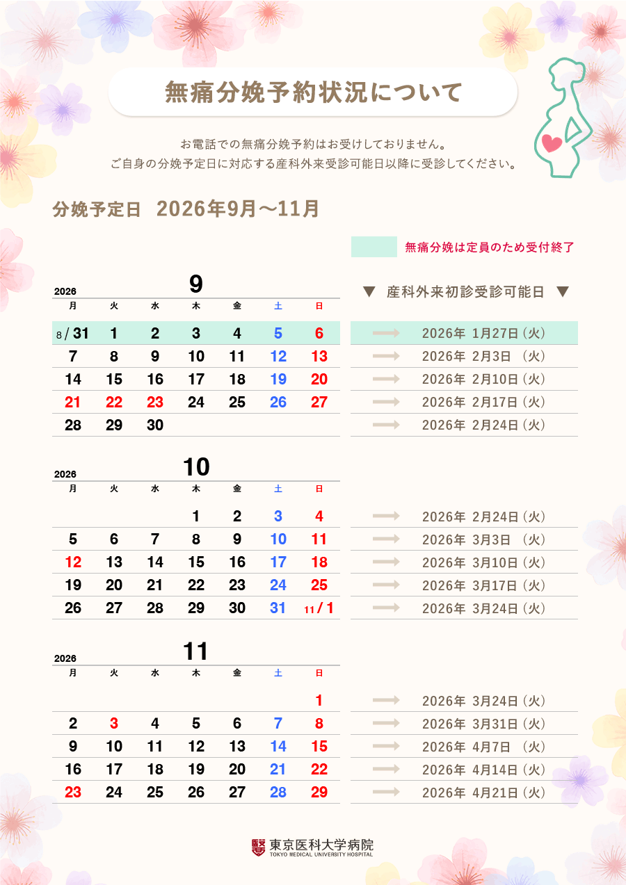 分娩予定日が2026年8月1日の方から、無痛分娩希望の方の受診方法が変更となります。