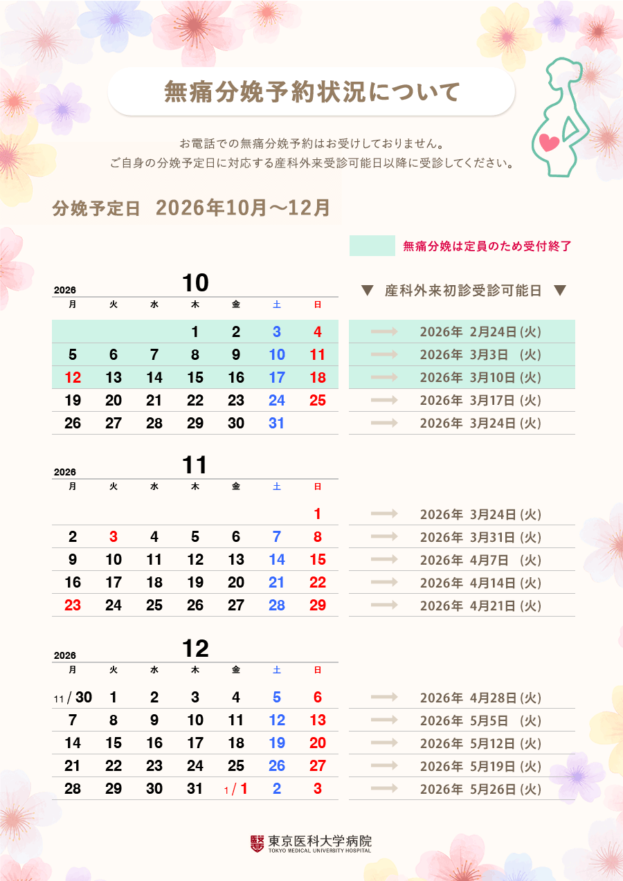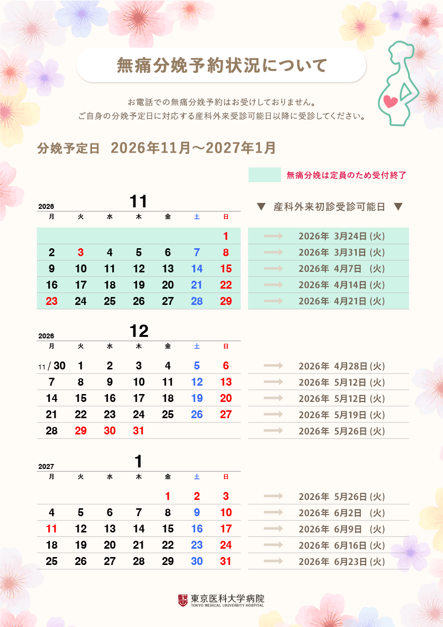 〈産科・婦人科より〉無痛分娩をご希望の方の受診方法について(予約状況など)