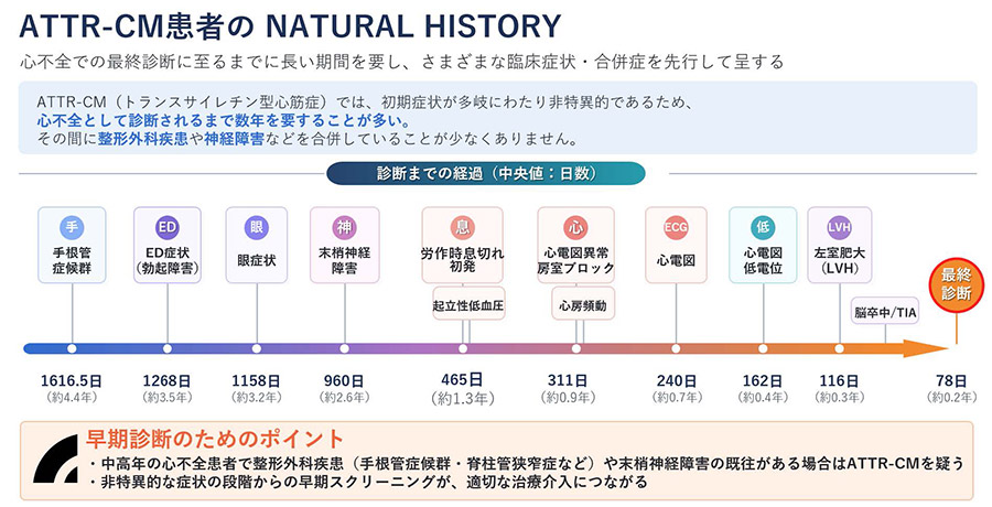 心不全を発症してから心アミロイドーシスの最終診断に至るまで、長期間を要することが少なくありません。
